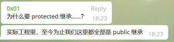 放到 protected 域内时,这样保持了 protected 继承的一致性。但考虑到在类外调用,需要改写一下: